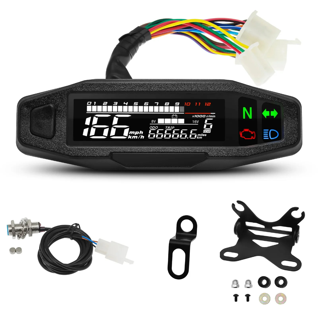 Velocímetro Universal De Motocicleta Digital LED Tacômetro Painel De Instrumentos LCD