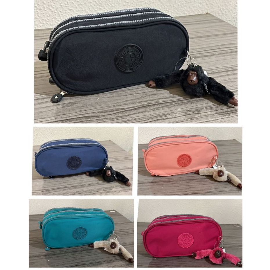 Caixa de bolsa escolar para crianças e adolescentes com 3 divisórias com porta-canetas com zíper e chaveiro de macaco