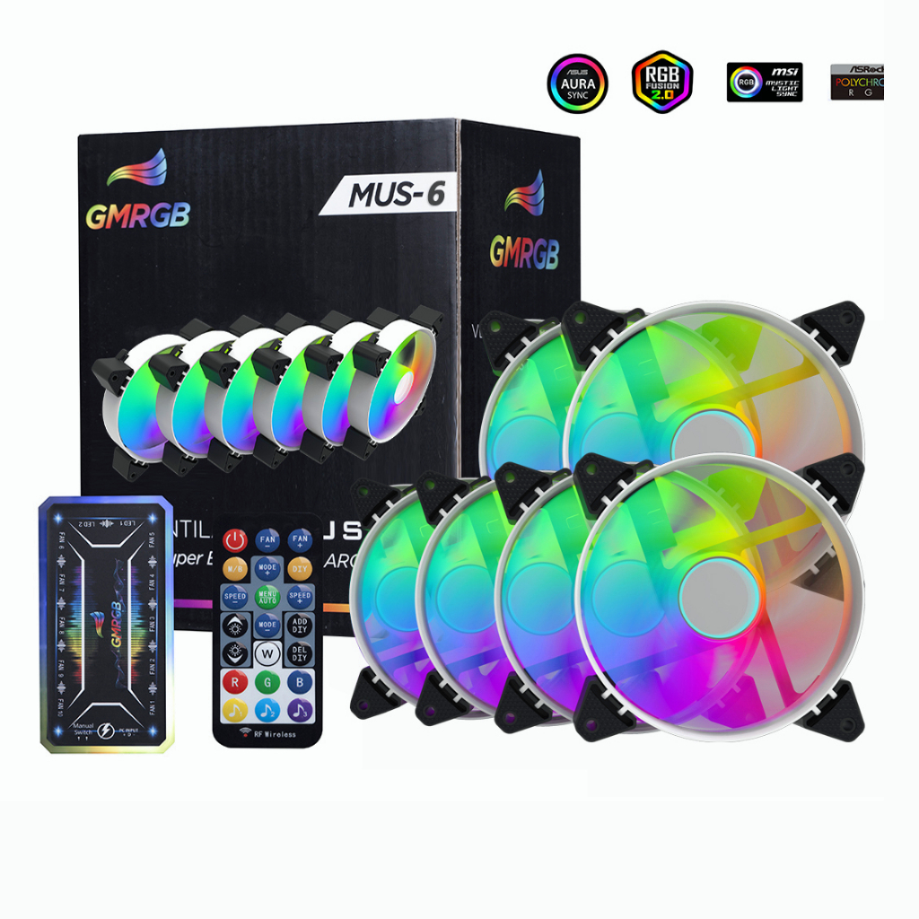 GMRGB Kit 3 Ventoinha De 120 Mm Para Caixa De Computador RGB 6PIN Lâmpada Colorida Resfriador Do Radiador Silenciar PC 5V DC ARGB Ventiladores Ajustar Velocidade Ventiladores Do Chassi Ventiladores Aura Sync 38CFM MUS-3(Controladora + 3 Fans)