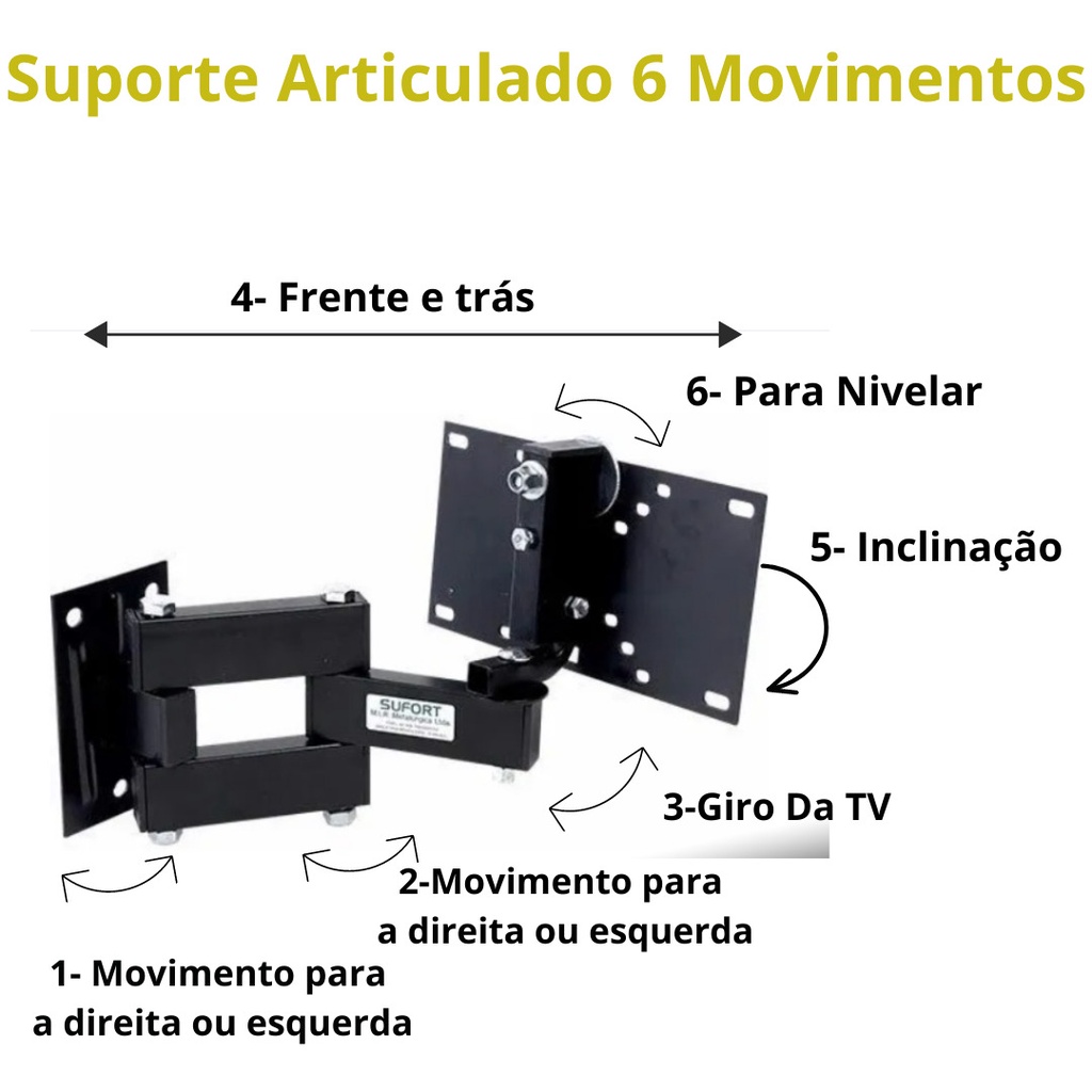 Suporte para Tv Articulado Tv Monitor Led Lcd Plasma 15 20 22 27 29 32 39 40 42 43 47 49 50 52 55 Polegadas Parede ou Painel