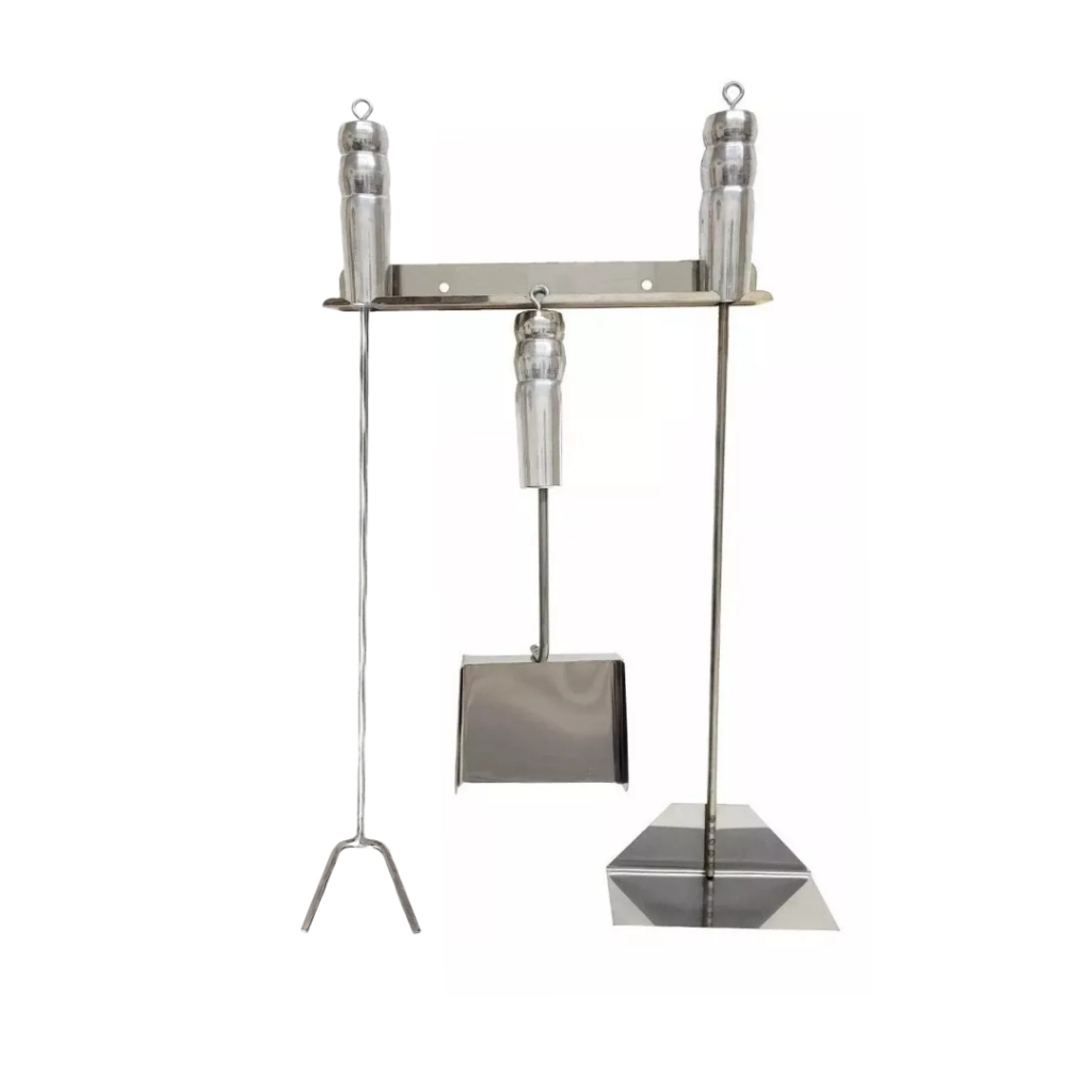 Kit Churrasco em Inox Espalha Brasa Rastelo Pazinha e Suporte Parede Kit Limpeza de churrasqueira Kit Limpeza Lareira Kit Lareira