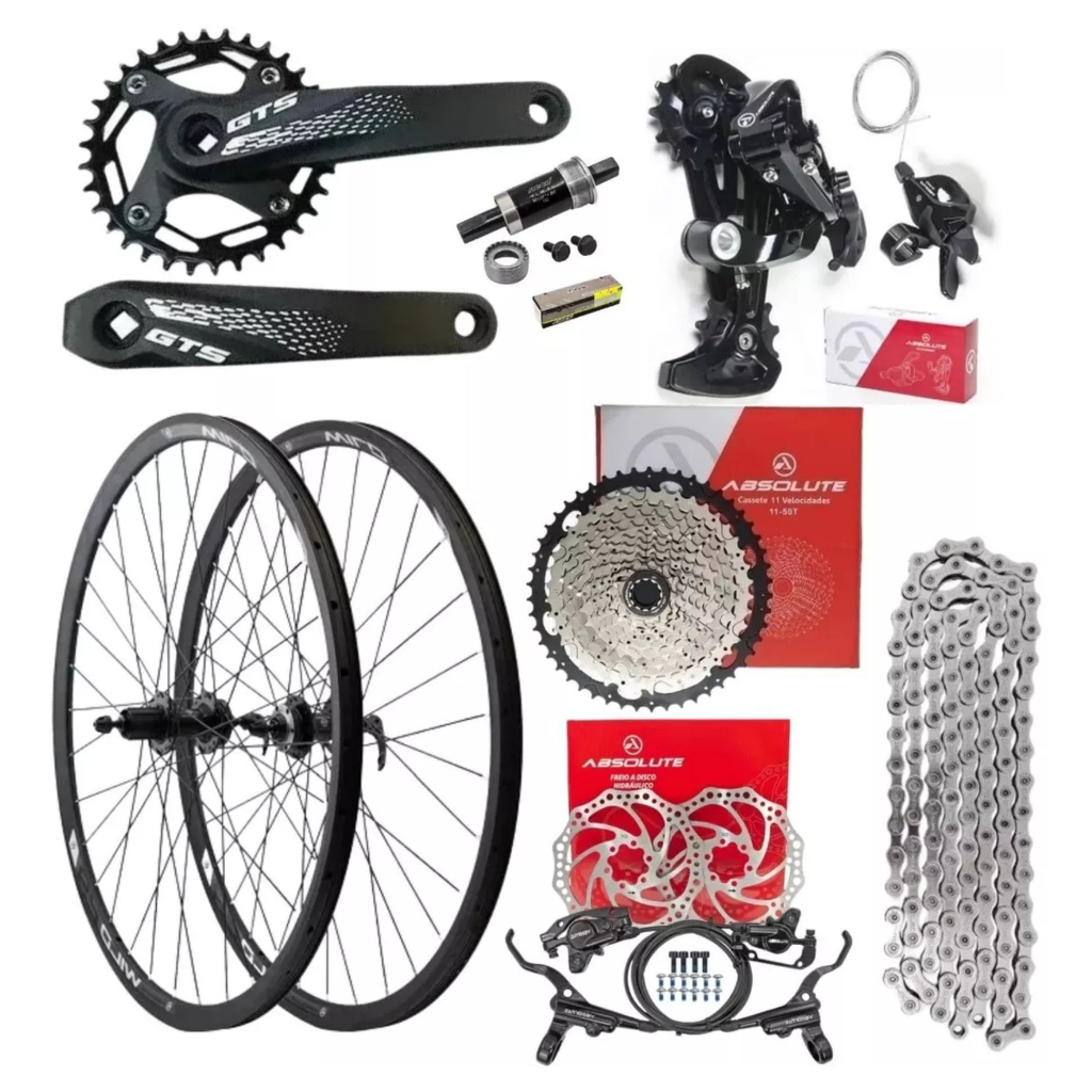 GRUPO RELAÇÃO ABSOLUTE WILD 2 1X12V 12V K7 11/50 + PEDIVELA PRIME INTEGRADO 34D + CORRENTE KMC PRATA