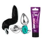 Plug Anal Joia Pedra Rabo + Gel Anestésico Lubrificante Anal