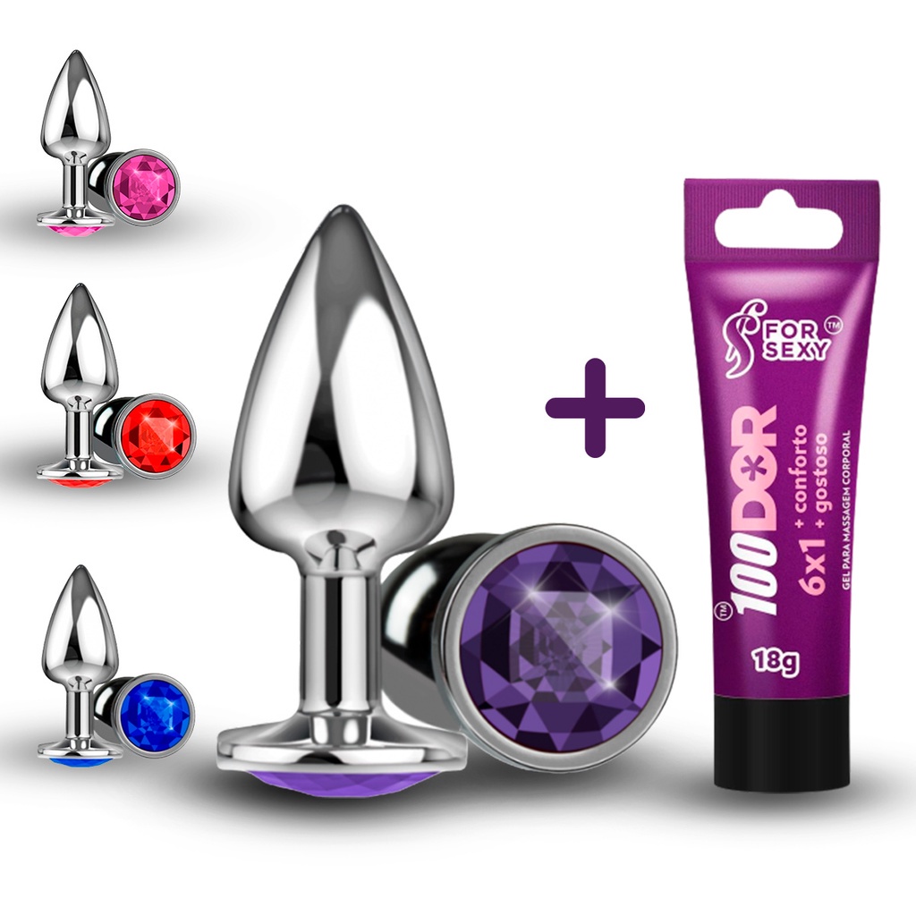 Kit Dia Dos Namorados Plug Anal Aço Inox Joia Tamanho P + Gel Lubrificante Para Sexo Anal Sem Dor+ Egg Ovo Masturbador Masculino Mc Kevinho Sex Shop