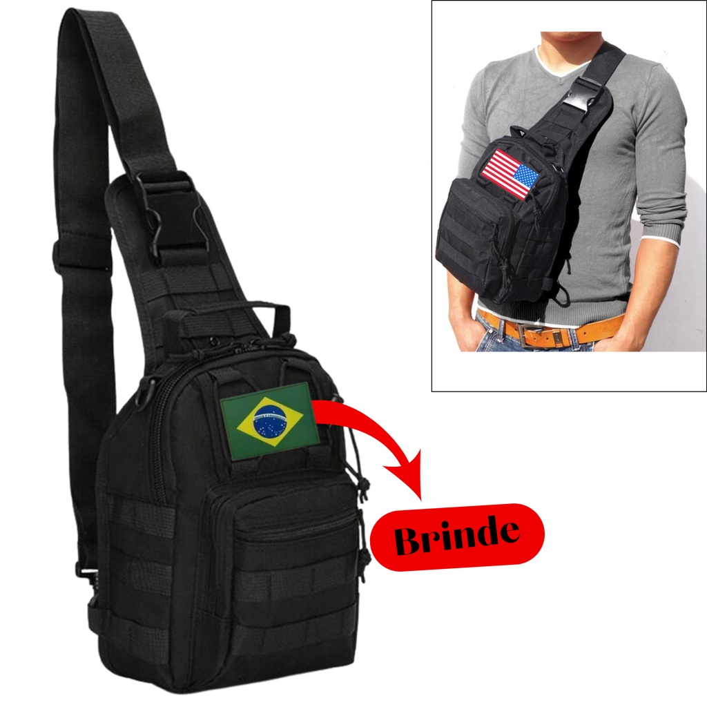 Bolsa Tática Transversal Peito E Ombro Impermeável Masculina Bornal Com Bandeira