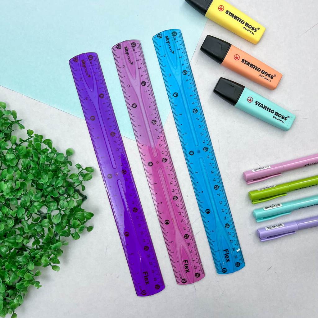Régua Colorida 30 cm Flexível (Azul, Rosa Lilás) - SkyPaper