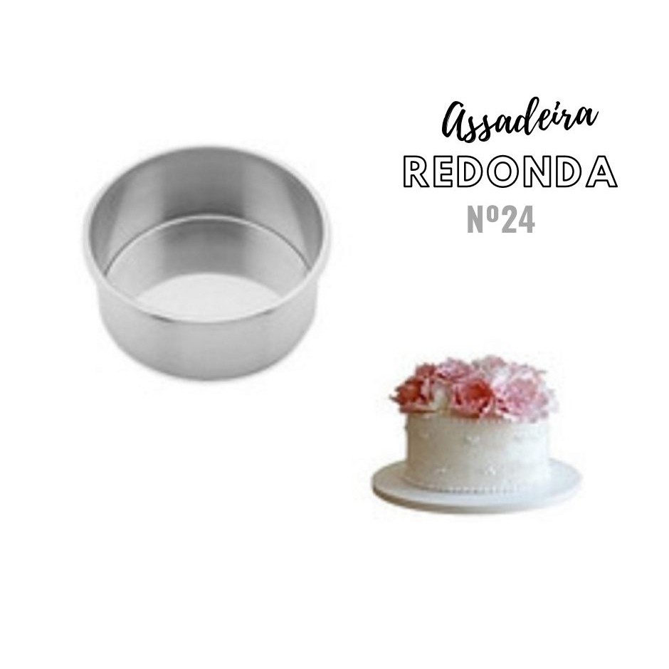 Forma Assadeira de bolo redonda alta com fundo fixo nº 24 em alumínio com de altura 9 cm para bolos, doces e tortas