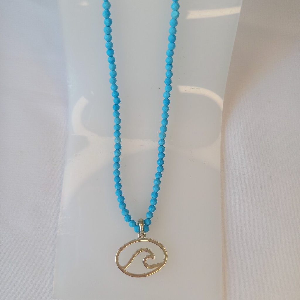 COLAR PRATA TURQUESA DO ARIZONA FACETADA E PINGENTE ONDA