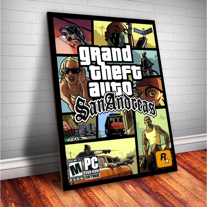 Quadro Placa decorativa geek Gta san andreas video game parede & decoração c/ moldura A3 40x30