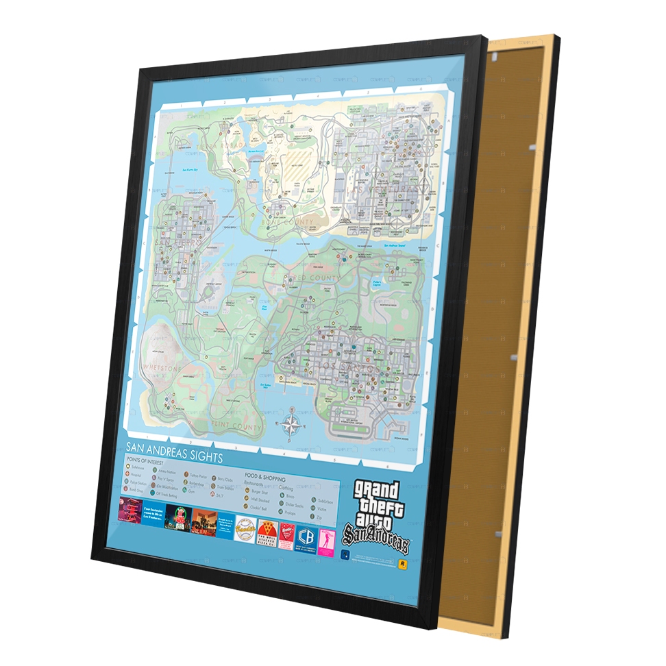 Quadro Mapa Gta San Andreas Moldura e Vidro