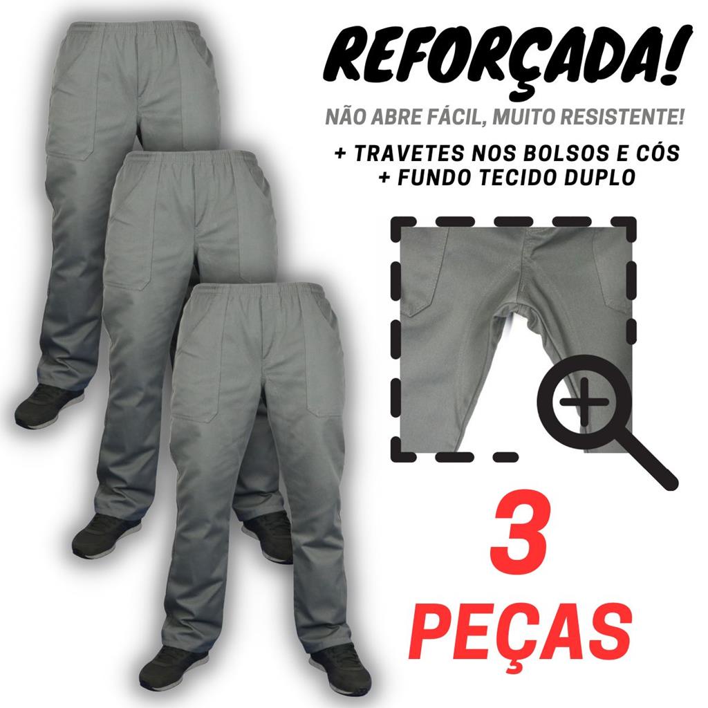 Kit 3 Calça Brim Trabalho Uniforme Profissional Costura Reforçado