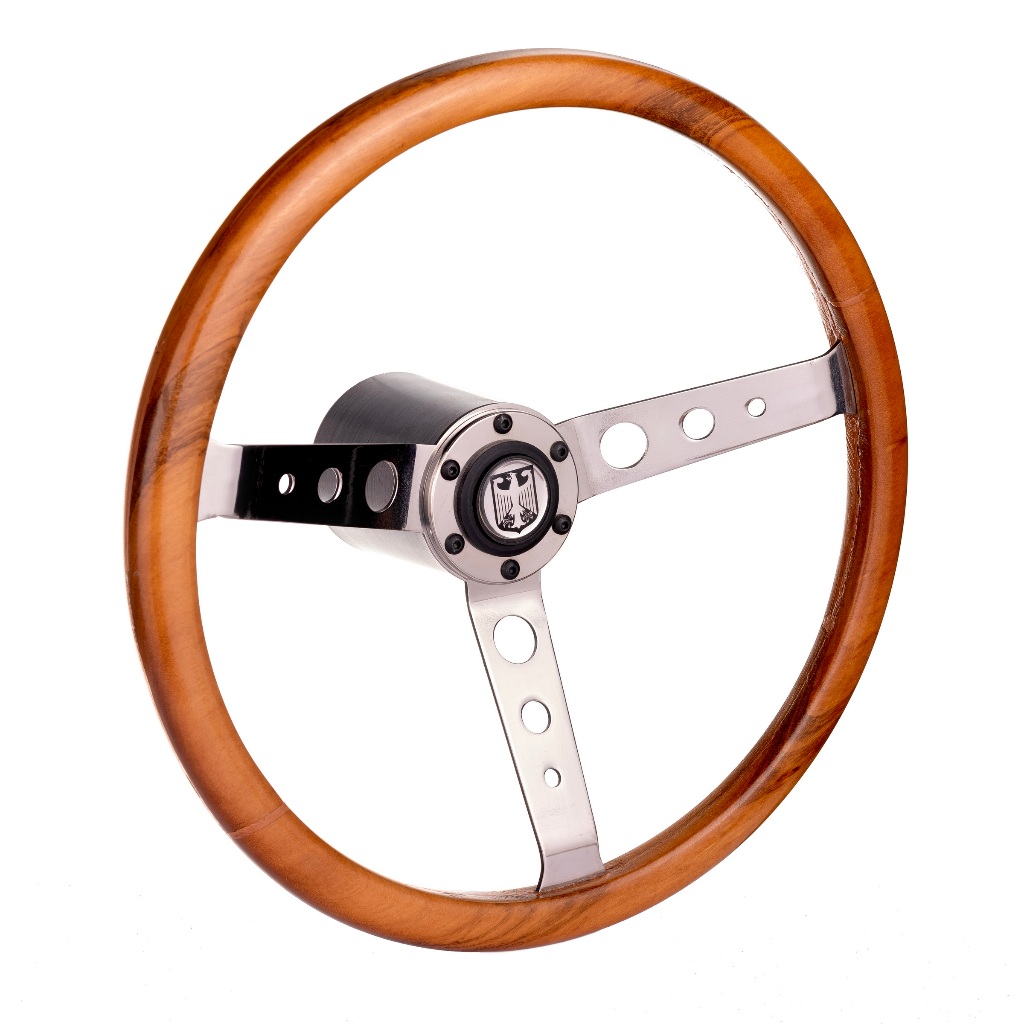 Volante classico em inox e madeira legítima + Cubo Volkswagen fusca GM opala chevette