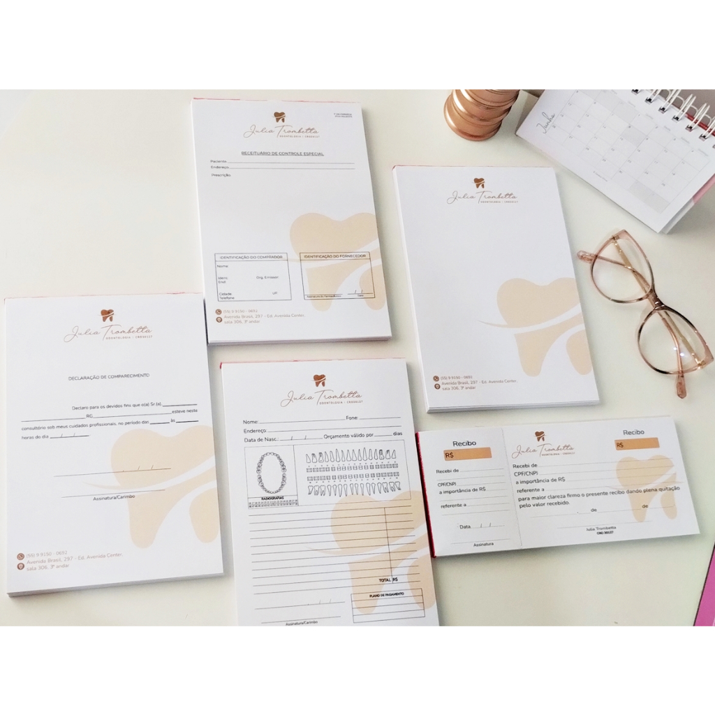 Kit Receituário Odontológico: Receituário, Receita Controle Especial, Atestado Odontológico, Recibo com canhoto e Picote