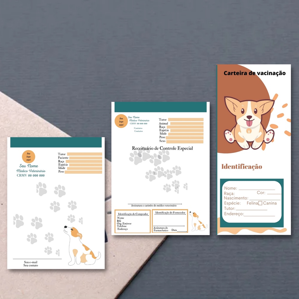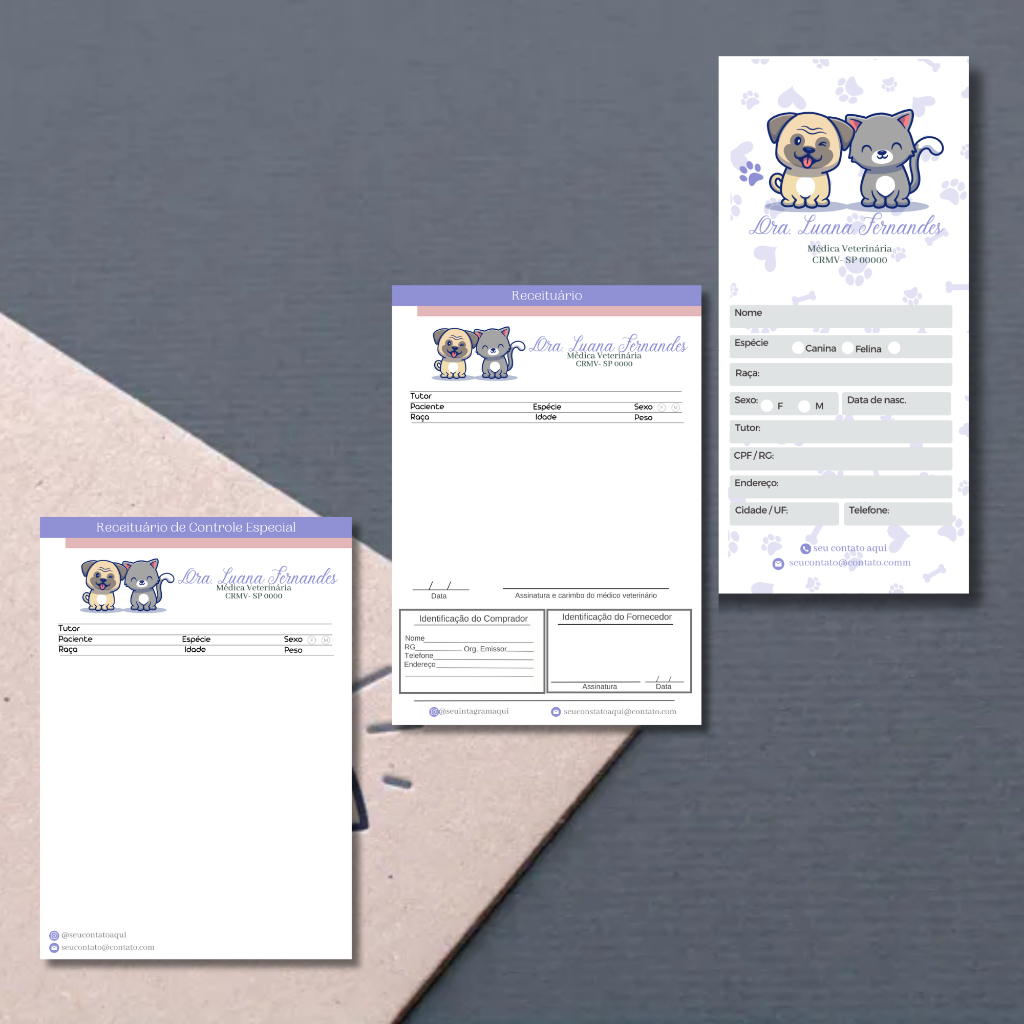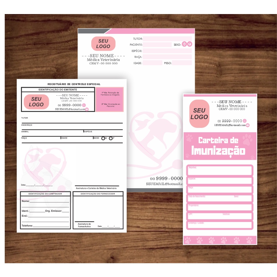 Kit Veterinário - receituário + receituário de controle especial + carteirinha de vacinação