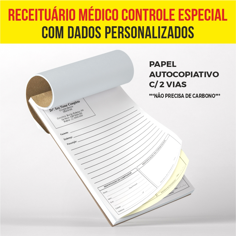 2 Blocos Personalizados Receituário Controle Especial Autocopiativo c/ 2 vias - 14,5x20cm