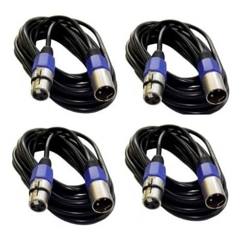 Kit 4 Cabo Microfone Xlr Canon Balanceado Macho X Femea 5m