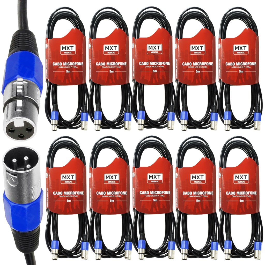 Kit 10 Cabo Microfone Xlr Canon Balanceado Macho Femea 5m Metros Mxt