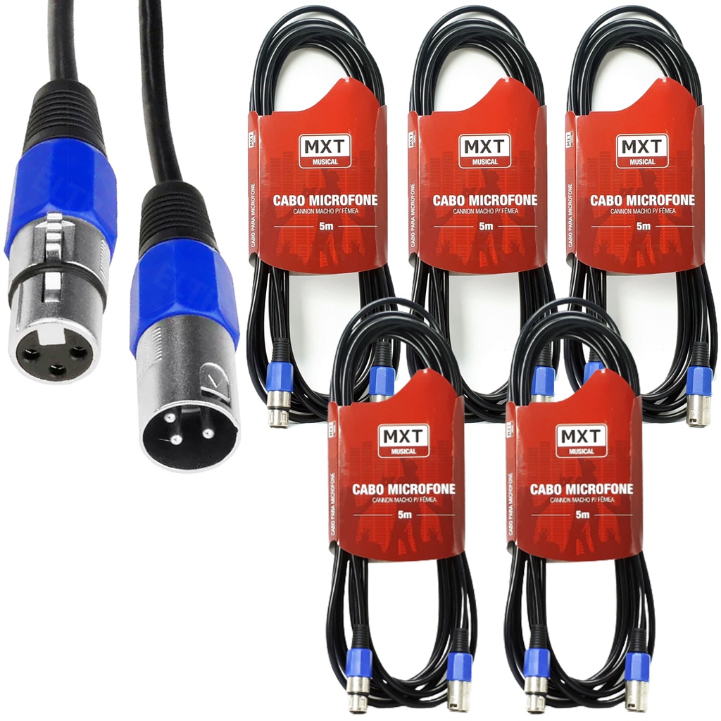 Kit 5 Cabo Microfone Xlr Canon Balanceado Macho Femea 5m Metros Mxt