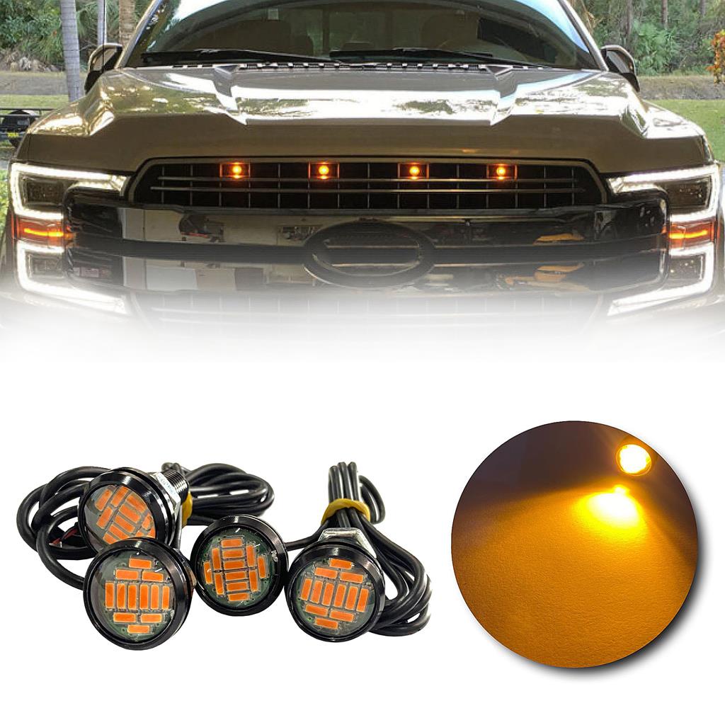 4 Pçs Conjunto 18mm Led Águia Carro Luz Do Olho Caminhão Auto Para Ford Suv Raptor Estilo 12 V Dc Âmbar Carro De Alta Qualidade Grade De Iluminação Kit