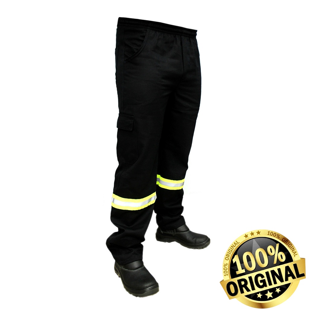 CALÇA REFORÇADA! Brim Pesado COM FAIXA REFLETIVA Preto Pretasarja fardamento Uniforme profissional De Trabalho Para Soldador Pedreiro Mecânico Construção Civil Marceneiro Jardineiro Reforçada!