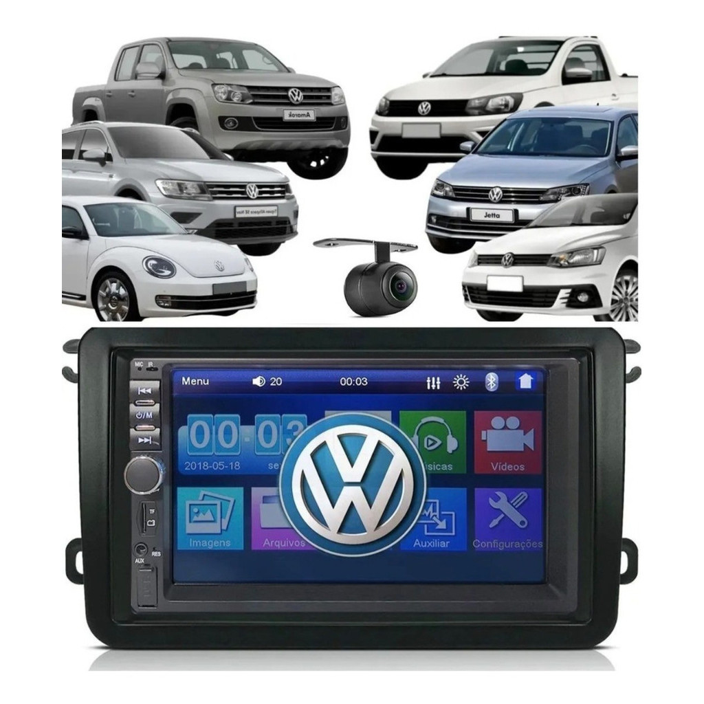 Central Multimidia Mp5 G7 G8 2 Din Vw +câmera Ré C/ Moldura