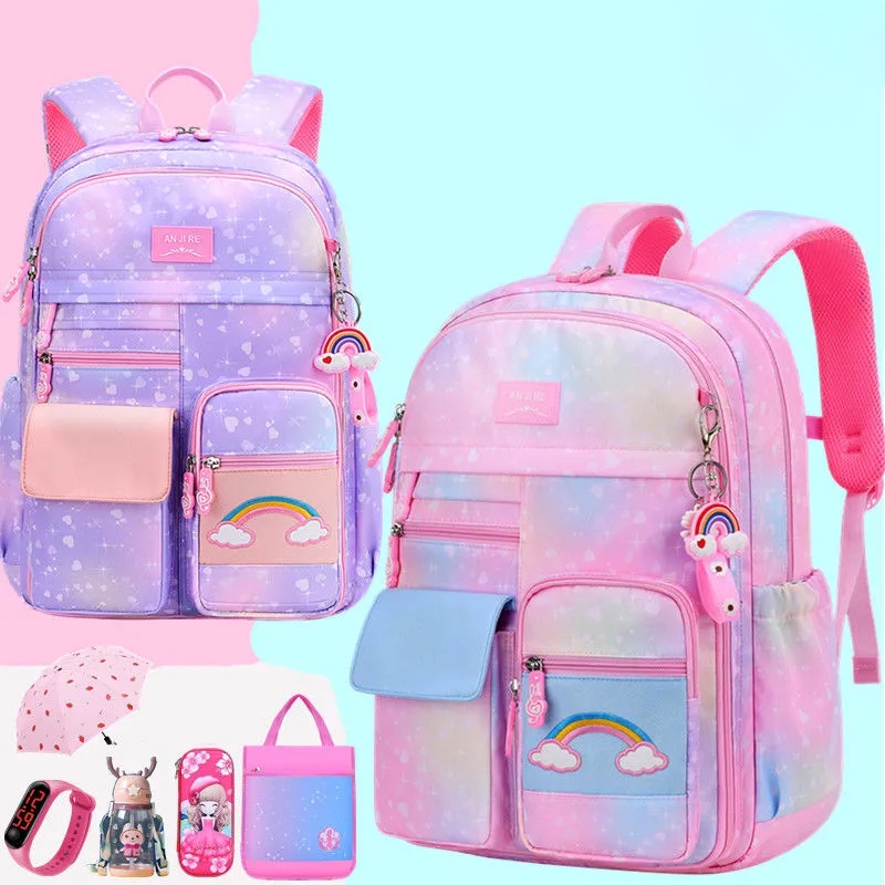 Coreana Fofo Macaron Estilo Frigorífico De Grande Capacidade Bolsa Escolar De Menina Aberta Completa Multifuncional De Cor De Princesa Gradiente