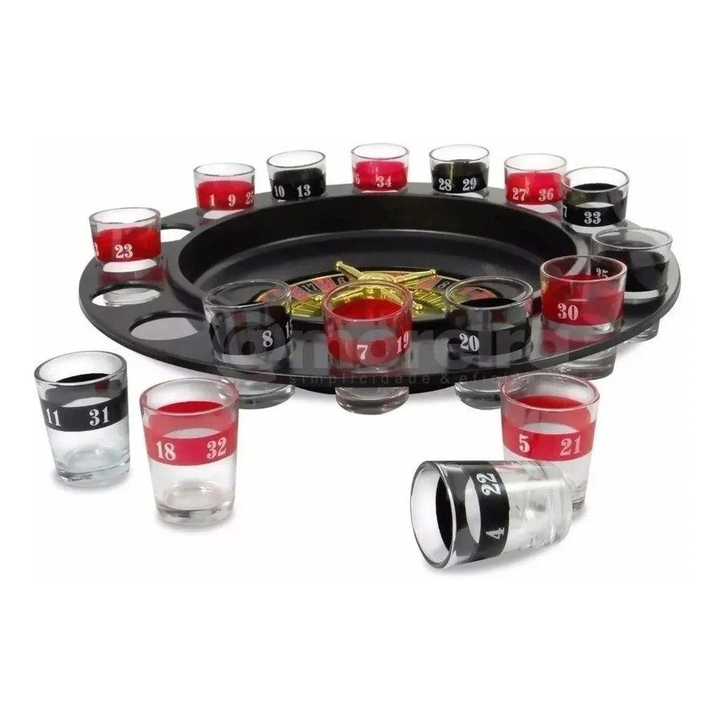 Jogo Cassino Roleta Shot - 16 Copos Bebida Drink Destilado