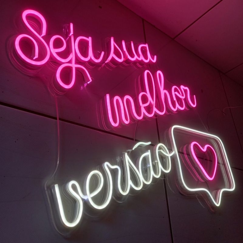 Luminária Painel Neon Led - Seja Sua Melhor Versão com Coração 84x76cm