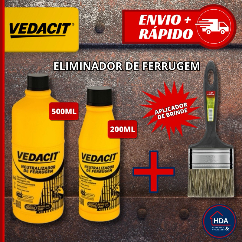 Removedor Neutralizador de Ferrugem 200ml ou 500ml C/ Pincel Aplicador Tipo Ferrox Ferrolin Vedacit
