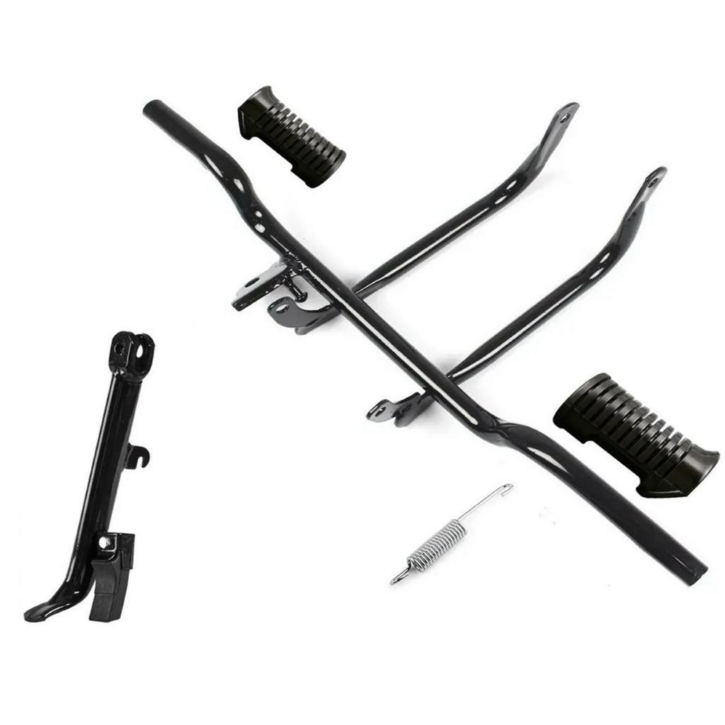 Kit Completo Estribo+Pedal de Apoio+Borrachas+Mola Titan Fan 125 150 160 / Start 160 - Com Proteção -Maciço - Cavalete Lateral - Ano 2000 a 2023