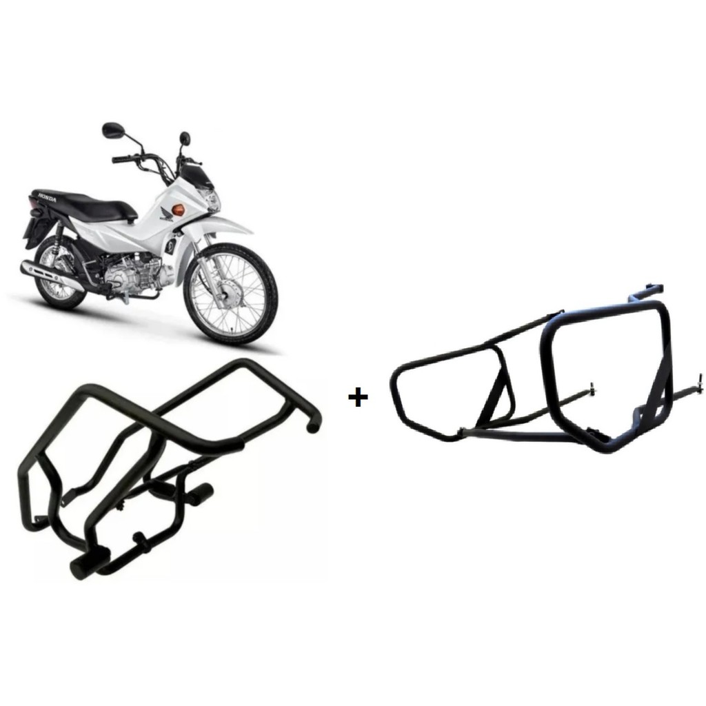 Protetor carenagem pop 100 110 preto fosco + afastador alforges