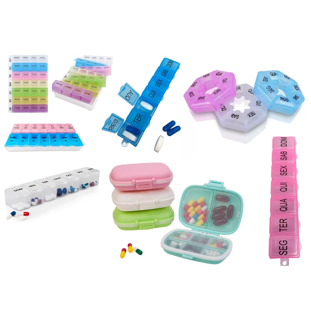 Caixa Porta Comprimido Remedio Diário e Semanal Organizador Suplementos Vitaminas e Medicamentos