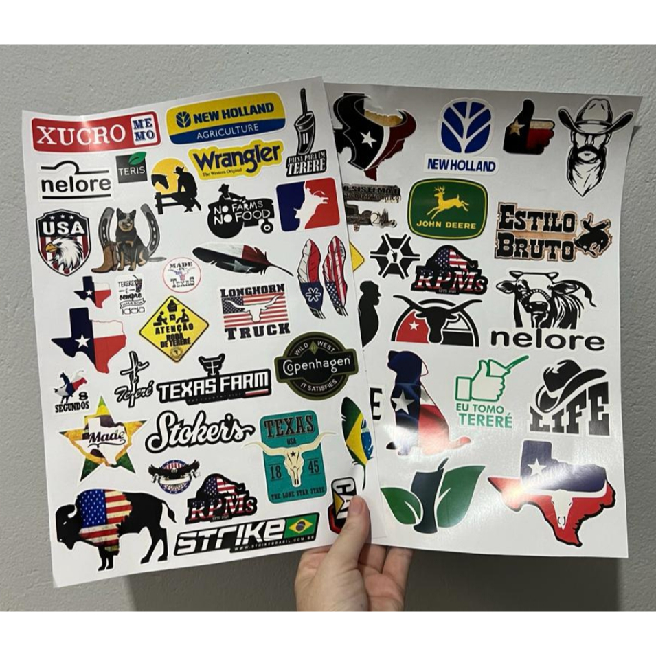 Adesivos para Garrafa Tereré Agro Country Kit 133 unid Cartela Sticker Cowboy Agronomia Rodeio 4X4