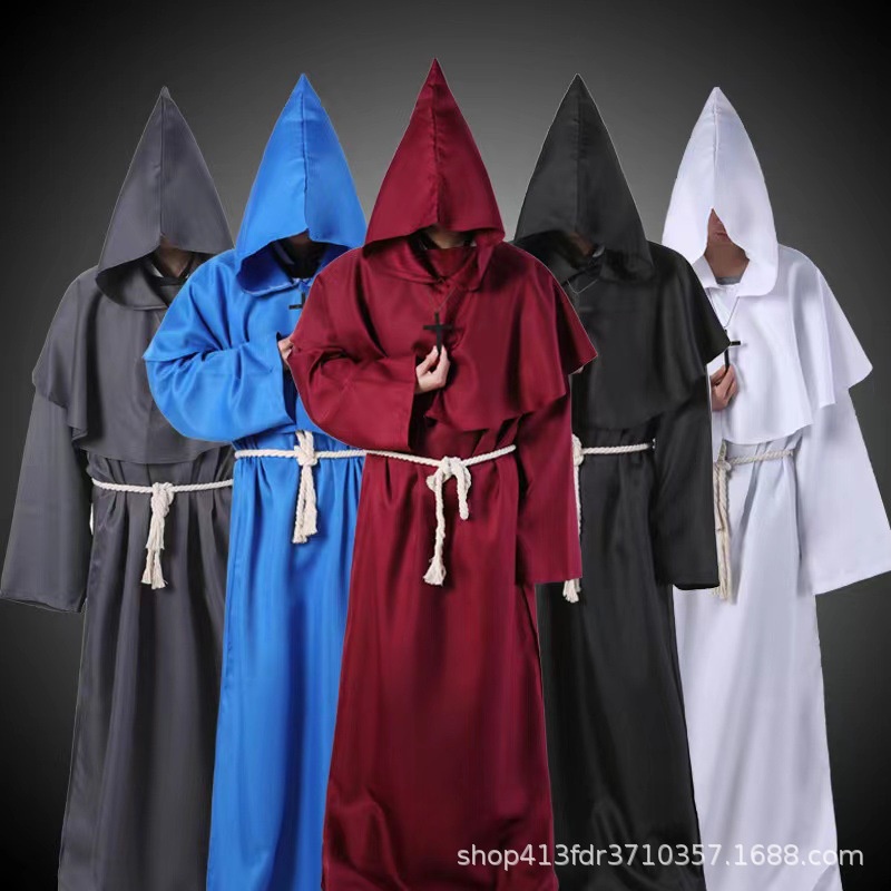 Fantasia Medieval Monk Robe Mago Sapato COSPLAY Capa Multicolor UW0C