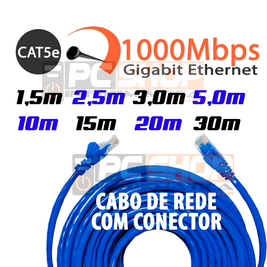 Cabo De Rede Azul Internet Lan CAT5e Patch Cord Pc Notebook Roteador Smart Tv Xbox Ps3 Ps4