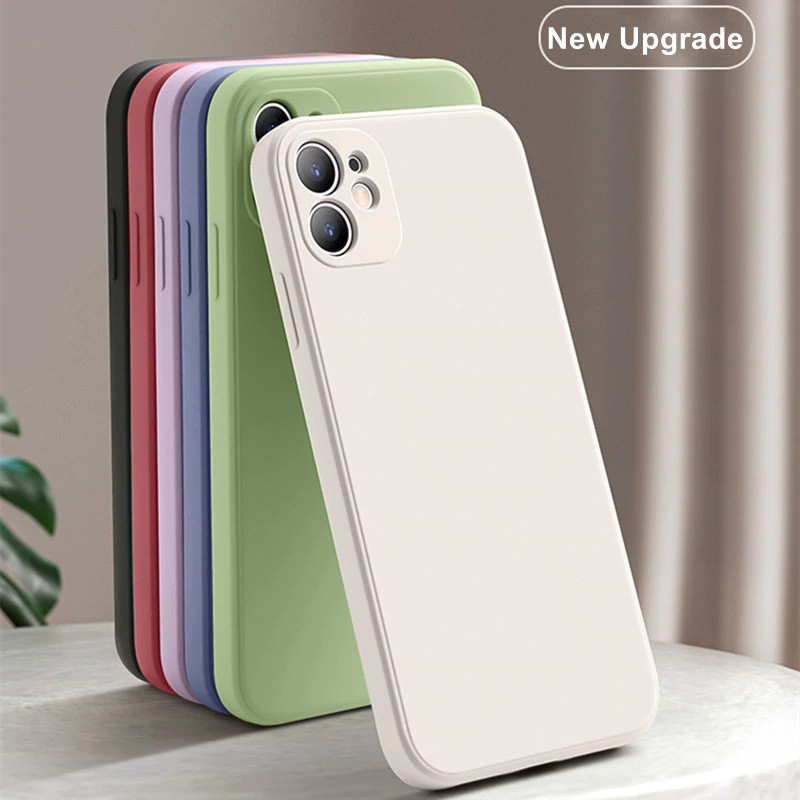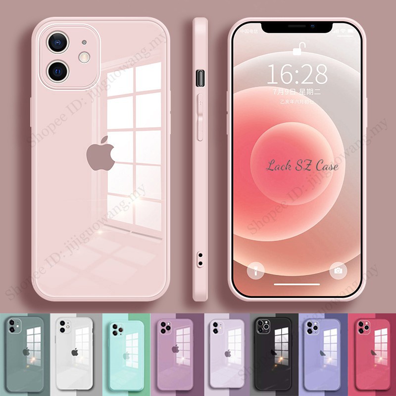 Capa De Silicone Líquido Borda Quadrada Vidro Resistente Para Iphone 12 11 Pro Max Xr Xs 7 8 Plus