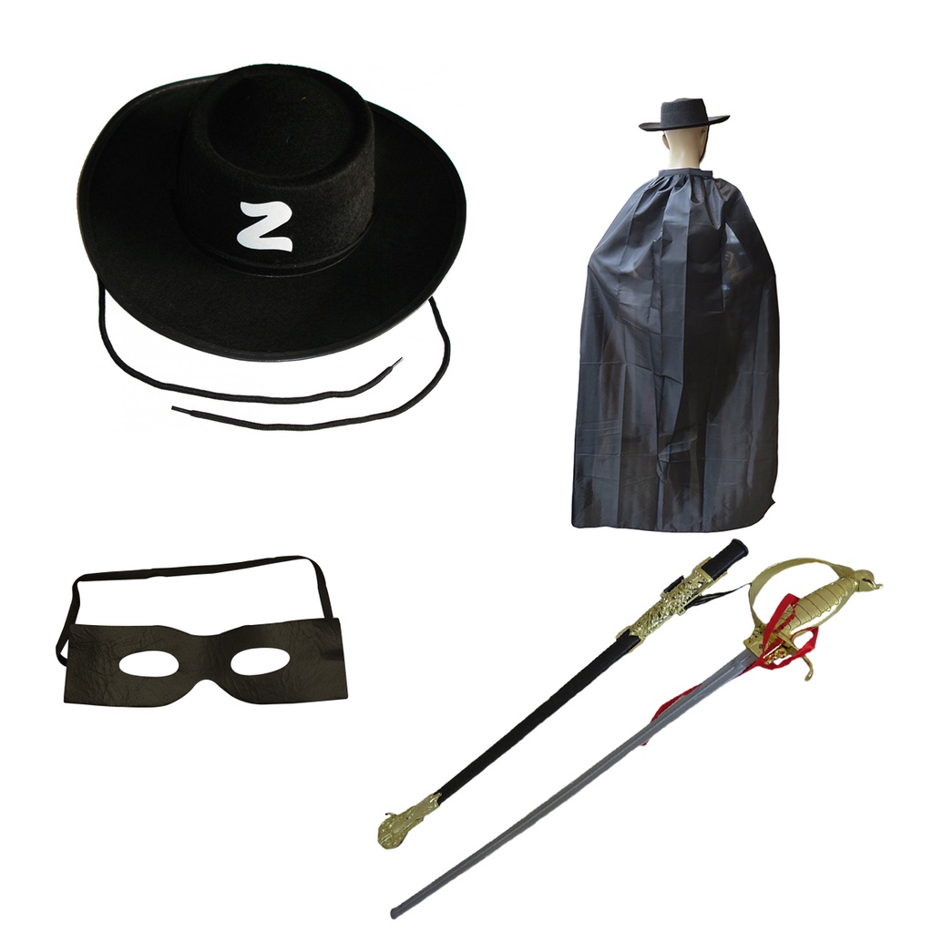 Kit Fantasia Zorro Adulto Chapéu, Capa, Espada e Máscara Cosplay
