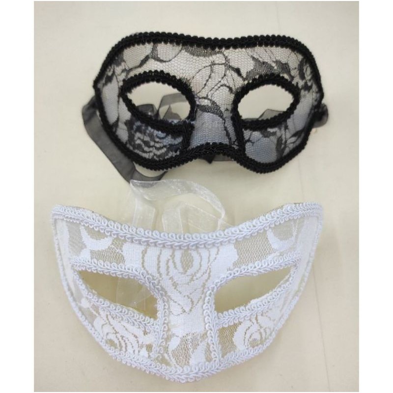 Kit 6 Máscara De Renda Carnaval Festa Fantasia Decoração Preto e Branco