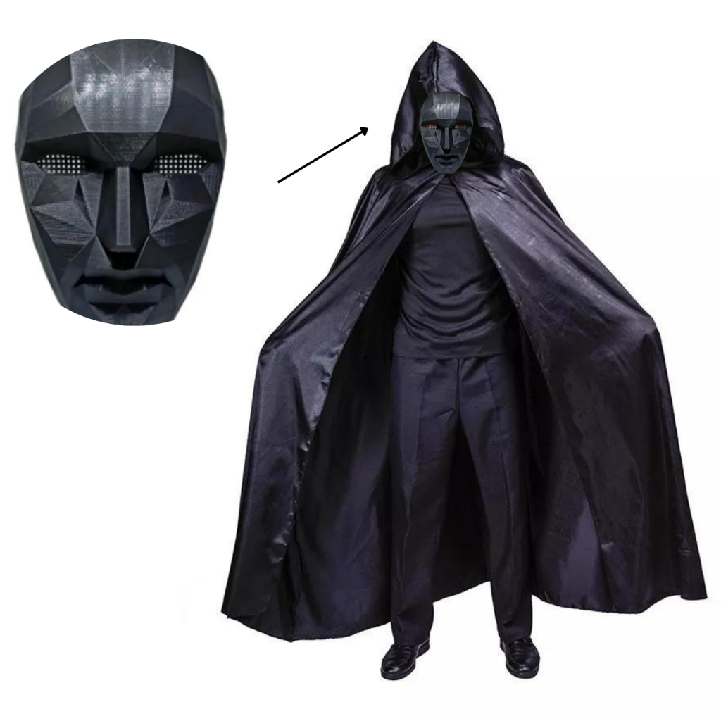 Fantasia Round 6 Chefão Máscara e Capa preta tamanho único