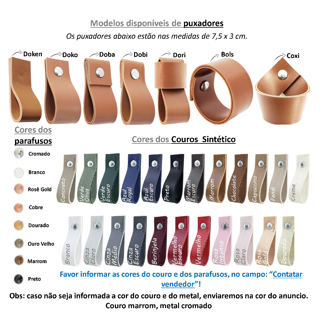 01 Puxador Alça para Móveis Armário Guarda Roupa Gaveta Porta - Cor Textura de Couro Marrom - Acabamento metálico em várias cores!