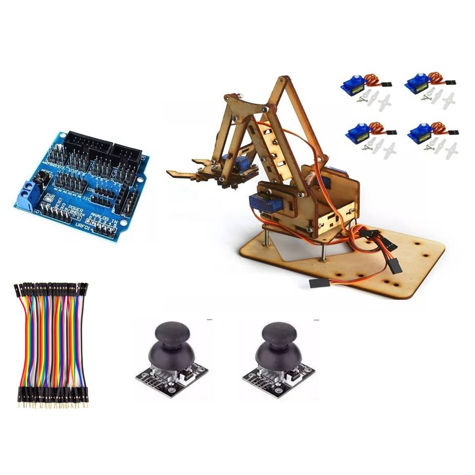 Braço Robótico Mdf Com 4 Micro Servos, Expansor, Jumper, 2 Joy Sticks