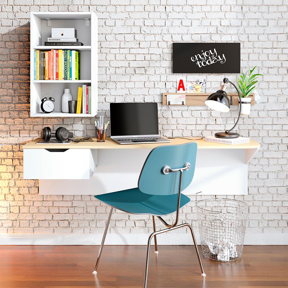 Escrivaninha Suspensa Tech com Estante - Branco/Tauari