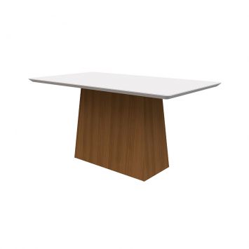 Mesa de Jantar Retangular com Tampo de Vidro Bárbara Off White e Imbuia 160 cm