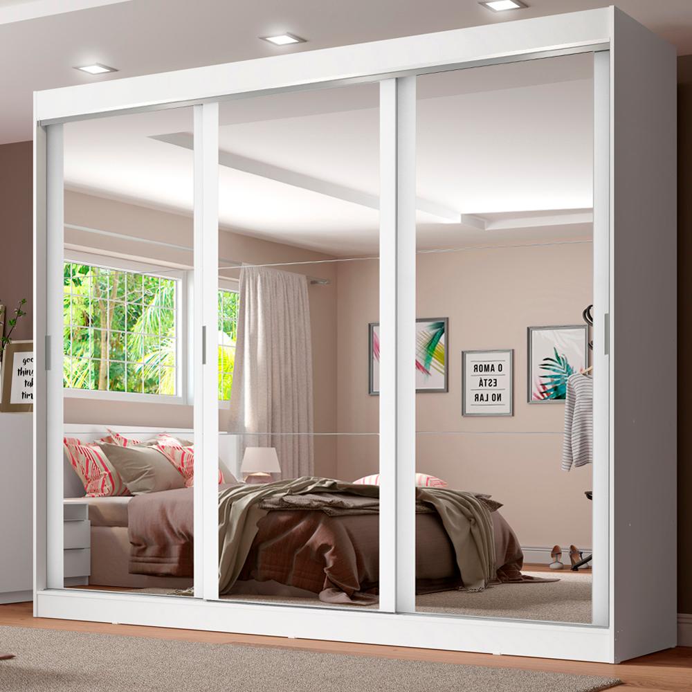 Guarda-Roupa Casal Madesa Napoli 3 Portas de Correr com Espelho - Branco