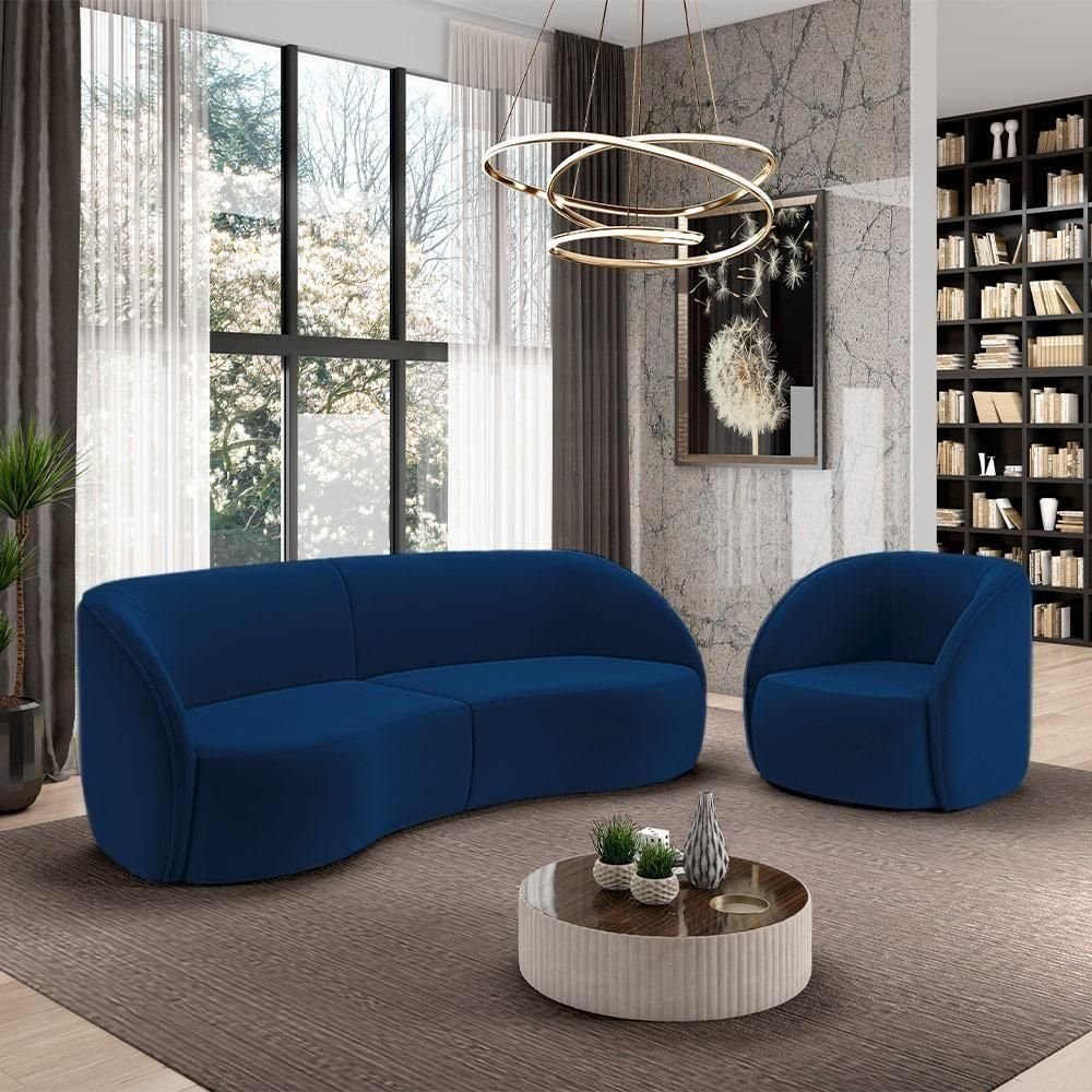 Conjunto Sofá Sala de Estar Bipartido 240cm e Poltrona Clarke Veludo Azul G45 - Gran Belo