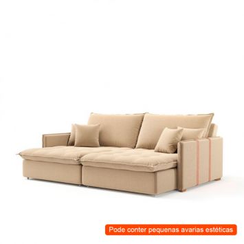 [OUTLET] Sofá Retrátil Sem Caixa 3 lugares Solomons Linho Bege 214 cm