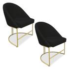 Kit 02 Cadeiras Poltrona de Jantar Bela Suede Preto Base Metálica Industrial Dourado - Pallazio