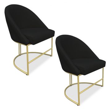 Kit 02 Cadeiras Poltrona de Jantar Bela Suede Base Metálica Industrial Dourado - Pallazio - Preto