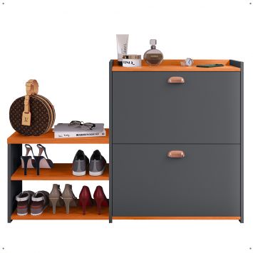 Sapateira Vertical Milano 2 Gavetas Basculantes Prateleira Porta Calçados Banquinho Hall Entrada Canto Quarto Retrô - Cinza/Cinamomo - RPM