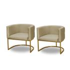 Kit 2 Poltrona Isabella Decorativa Pés Metálico Industrial Dourada Suede Bege